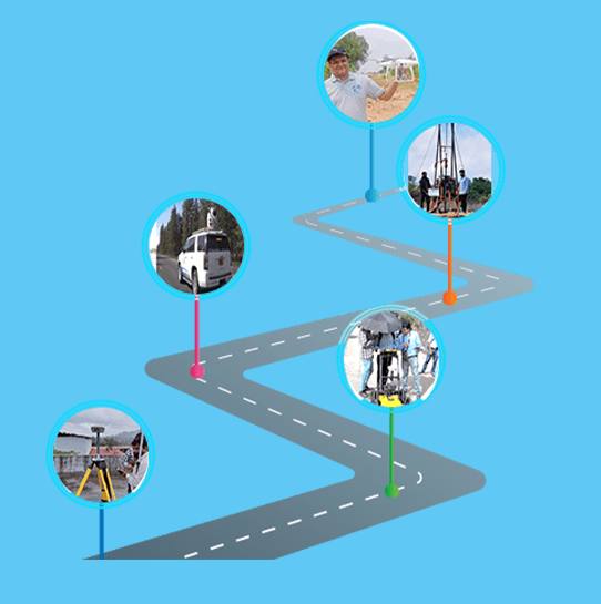 Survey, Investigation, GPR, NDT, CAD/GIS, LiDAR, Photogrammetry, RoU, Land Acquisition, Irrigation, Highway Engineering, Civil Constructions & Manpower Services